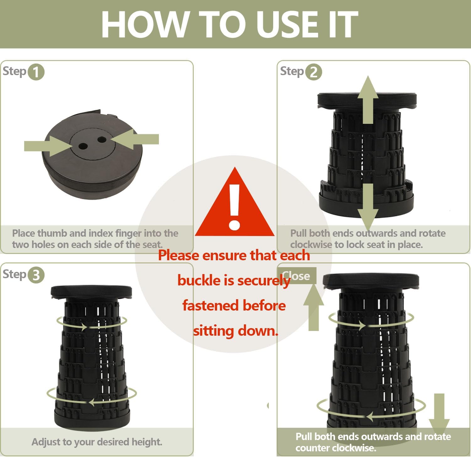 【PREVENT SELF-OPENING】When the folding stool is stowed away, the snap designed on the stool cap will work to prevent the stool from opening on its own. The non-slip base ensures the stability of this foldable stool, providing you with a safe and comfortable sitting position.