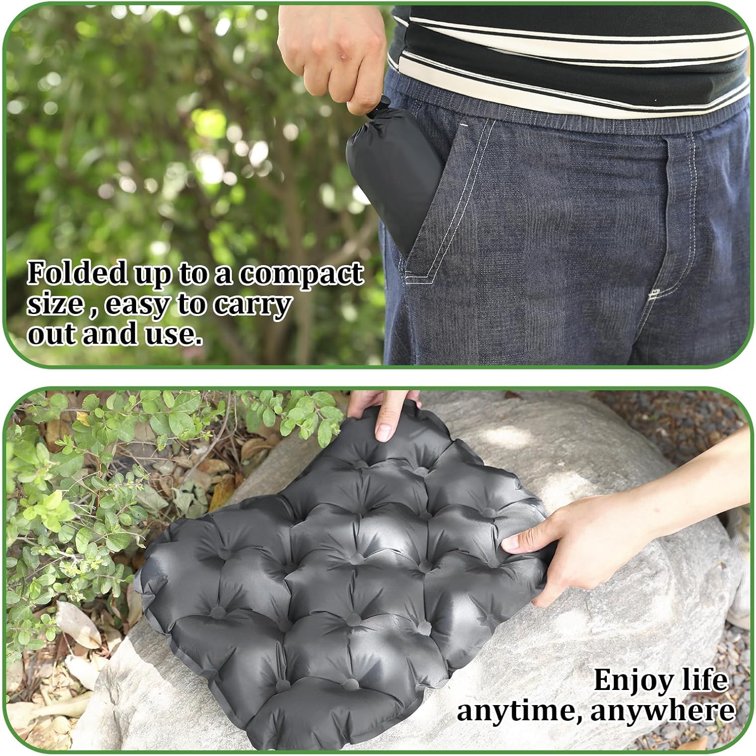 【Durable Material】Seat cushion is made of nylon TPU, travel cushion is both waterproof and wear-resistant, camping pad ensures long-term use in various environments without compromising comfort