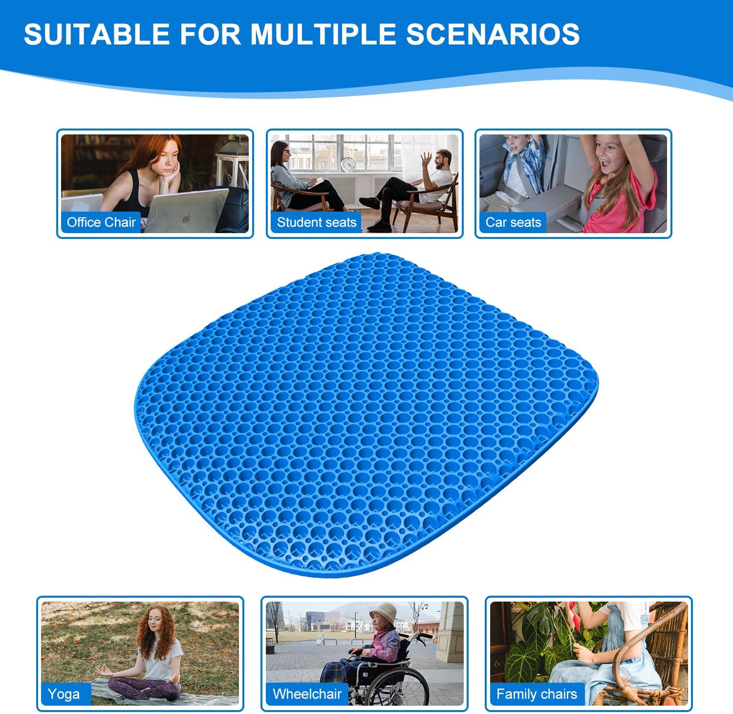 【Super soft & not easy to deform】 Gel cushion with cushioning properties, even put eggs sit down will not break. In addition, it features a highly elastic gel material that, when stretched and squeezed, returns to its original shape in a moment, providing superior durability over traditional cushions.