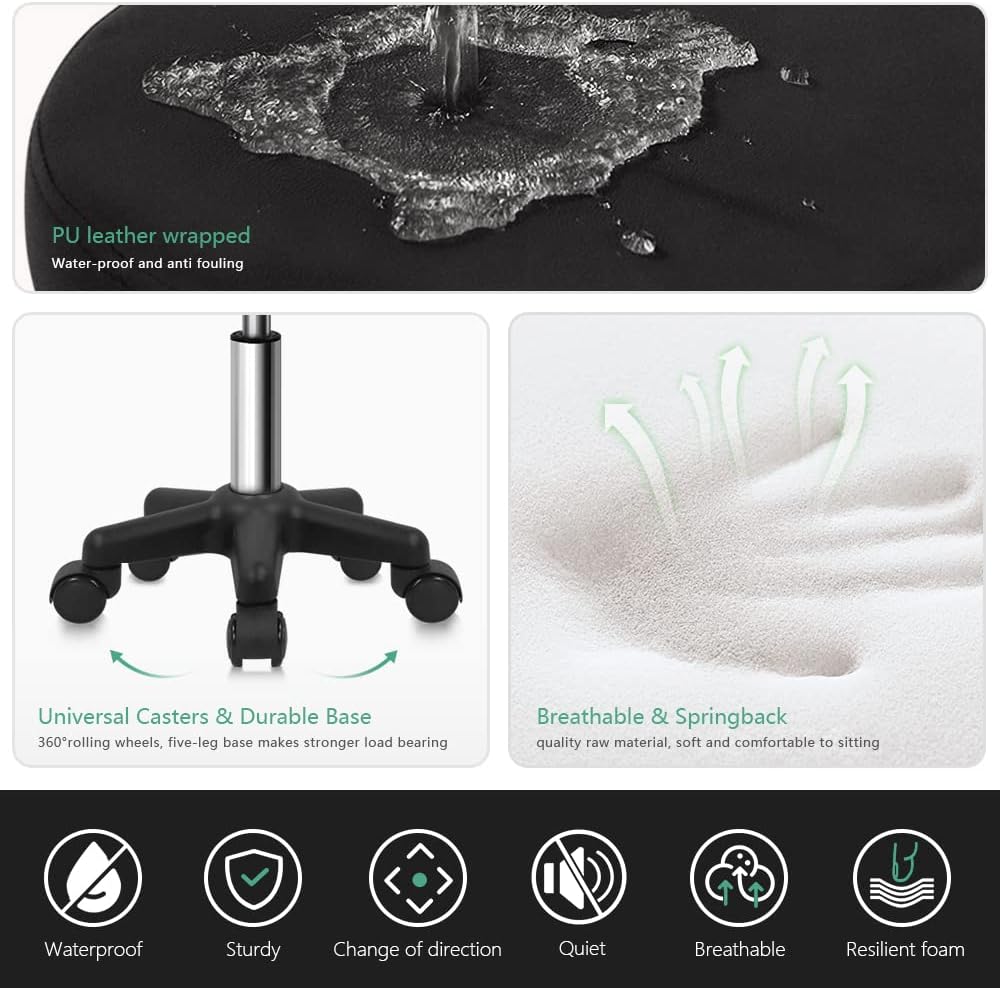 Scalebeard Round Rolling Stool Height Adjustable Stool with Wheels for Spa Salon Massage