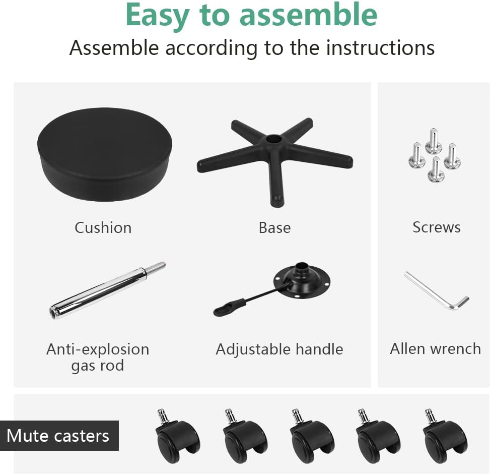 - Height Adjustable Stools: Remove the plastic cover from the metal cylinder, seat height range: from 43.5cm/17.1in to 59cm/23.2in.