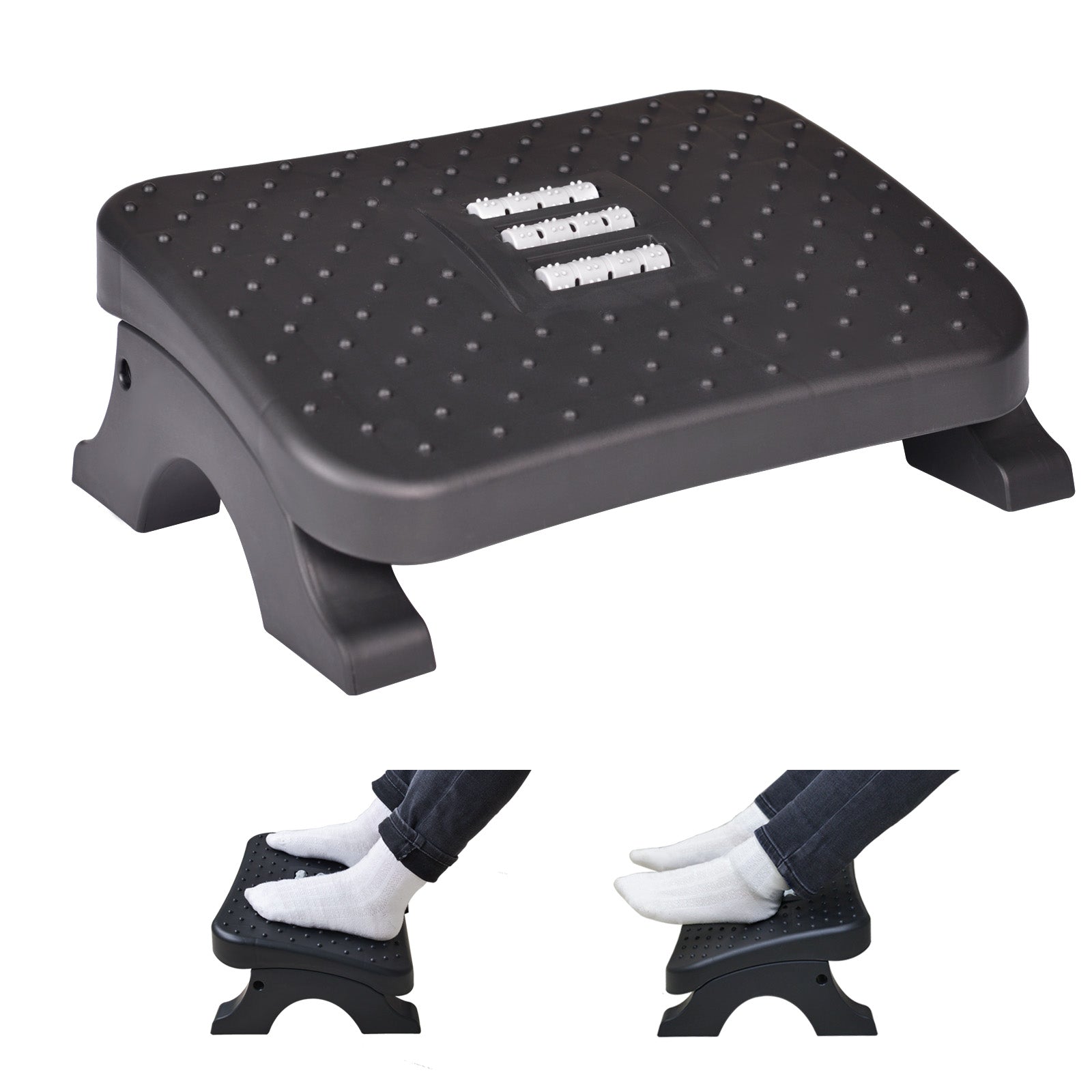 Massage Surface and Roller: Textured surfaces with massage and rollers keep your feet comfortable and improve blood circulation. This office footrest features four firm non-slip legs, ensuring it won’t slide on wood floors.