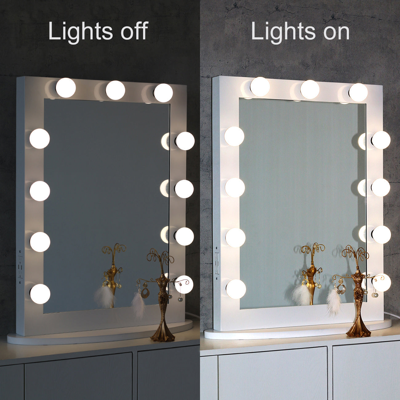 2. Good Accessories: This lighted vanity mirror contains 11 dimmable low voltage high quality LED bulbs and 2 extra bulbs included,it is not only safe but also energy-saving and environmental protection.